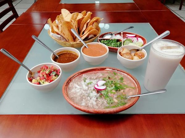 Barbacoa estilo Guadalajara acompañada de frijoles de la olla chiles toreados y cebolla desCemada