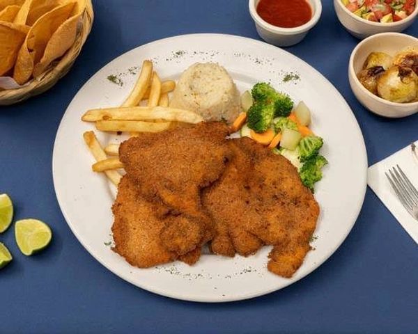 Acompañados de ensalada puré de papa, nopal asado, Chile güero, arroz.