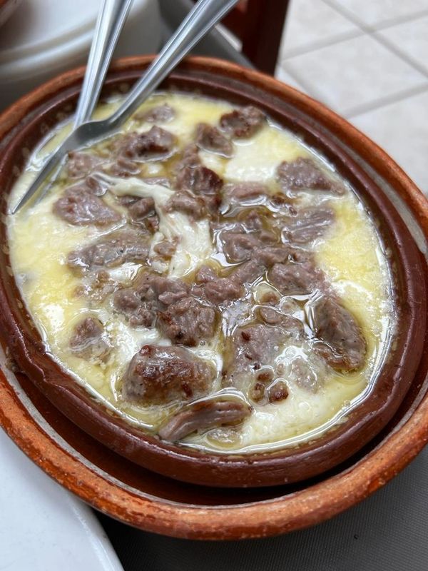 (LOS ALMABRES Preparados con chile poblano, cebolla, tocino, y gratinados)